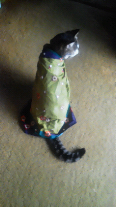 掃除をしていたら、和風柄なハンカチを見つけた。というわけで、折角なので、ももちゃんに付けてみた
